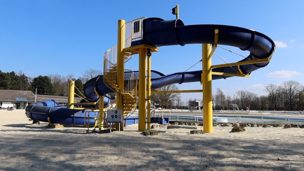 De toekomst voor het domein zag er eerst heel anders uit. Er lagen vier scenario’s op tafel. Het eerste scenario was een volledige renovatie van het bestaand zwembad, scenario twee was de bouw van een volledig nieuw zwembad, het derde scenario was het zwembad vervangen door een zwemvijver en het laatste scenario was een grote oppervlakte met water recreatie.