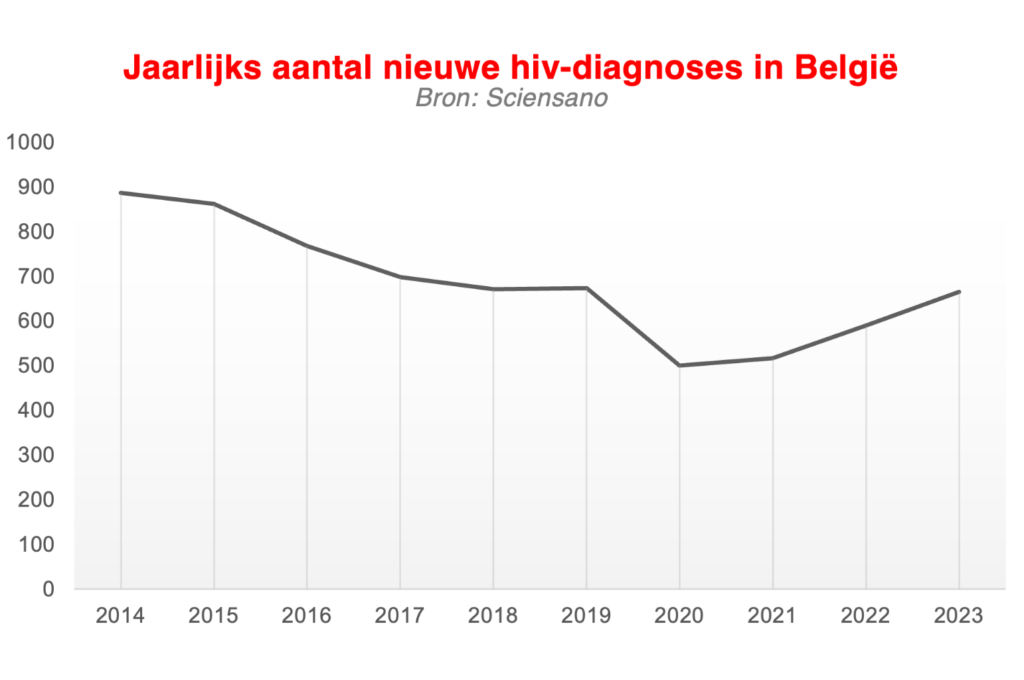Hoewel de wereldwijde cijfers voor nieuwe hiv-besmettingen in 2023 het laagste niveau sinds de jaren 80 vertonen, zien we in België een stijging. “De stijgende trend in hiv-diagnoses toont aan dat het virus zich blijft verspreiden, ondanks de beschikbaarheid van een breed aanbod aan preventiemogelijkheden zoals condoomgebruik, regelmatig testen en preventieve hiv-behandelingen als PrEP”, verklaart Sciensano.